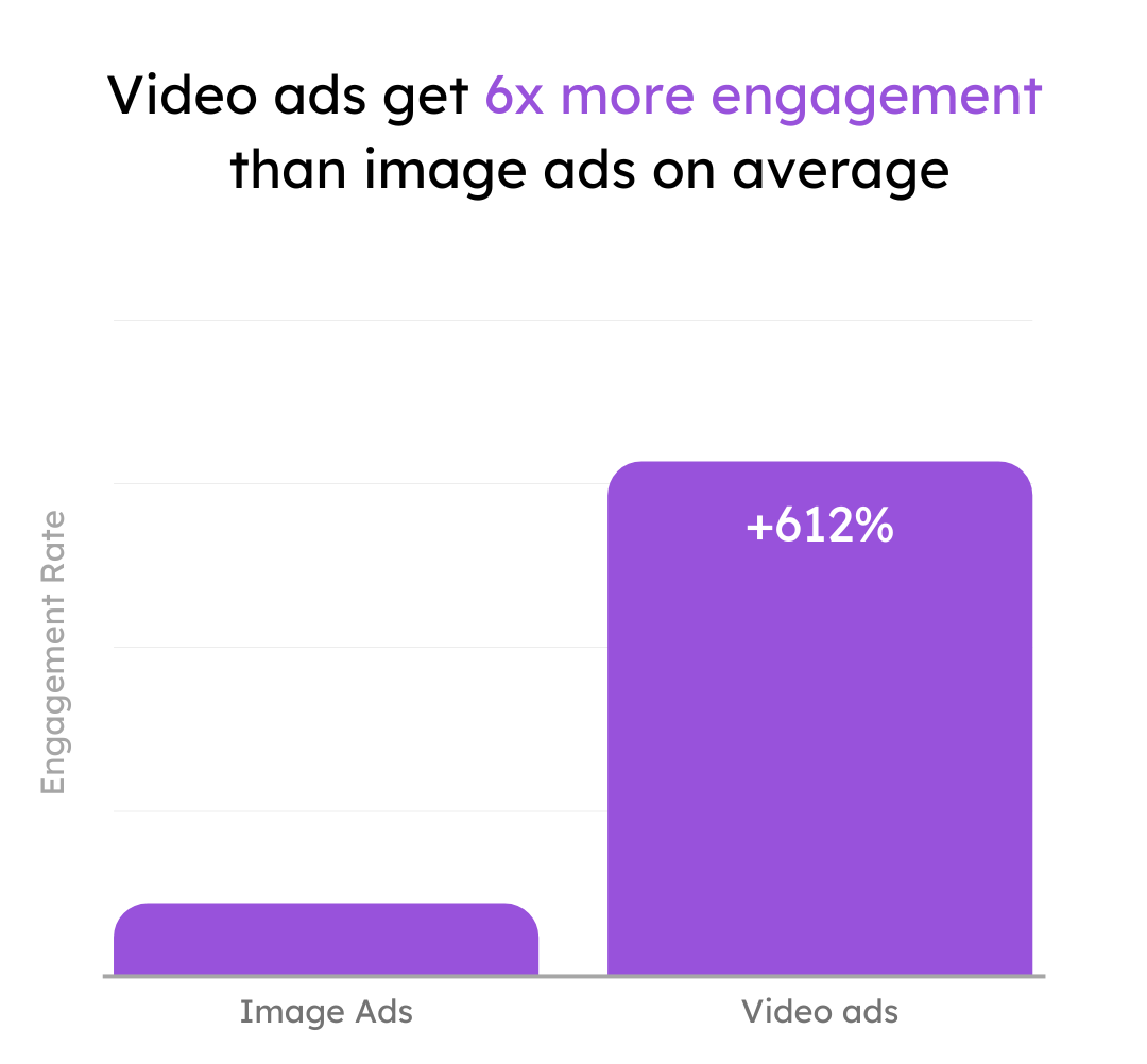 Now, if your goal is engagement—likes, comments, shares, building that community vibe—video isn’t just better. It’s six times better. We’re talking 612% more engagement on average compared to static ads.